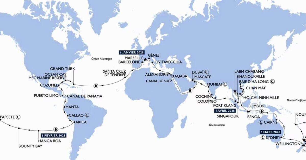Ihre Weltkreuzfahrt 2028 beginnt in Spanien, wo Sie das mediterrane Kulturerbe entdecken können. Nach der Überquerung des Atlantiks machen Sie Ihren ersten Halt auf Teneriffa, gefolgt von Zwischenstopps in den türkisfarbenen Gewässern der Bahamas, Grand Turk, Cozumel und Puerto Limón in Costa Rica. Sie passieren den berühmten Panamakanal. Weiter geht es in den Südpazifik, wo Sie die geheimnisvolle Osterinsel, Tahiti und Neuseeland erkunden. Anschließend fahren Sie weiter nach Indonesien und Vietnam, dann in den Indischen Ozean und in den Nahen Osten mit Dubai.